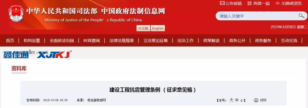 10月8日,司法部發(fā)布《建設(shè)工程抗震管理?xiàng)l例(征求意見稿)》,主要內(nèi)容如下:1、對(duì)相關(guān)單位法律責(zé)任進(jìn)行明確。施工單位不按抗震設(shè)防強(qiáng)制性標(biāo)準(zhǔn)施工的,責(zé)令改正,處工程合同價(jià)款百分之二以上百分之四以下的罰款;造成建設(shè)工程不符合抗震設(shè)防強(qiáng)制性標(biāo)準(zhǔn)的,負(fù)責(zé)返工、加固,并賠償損失;情節(jié)嚴(yán)重的,責(zé)令停業(yè)整頓,降低資質(zhì)等級(jí)或者吊銷資質(zhì)證書。建設(shè)單位明示或暗示施工單位降低工程抗震性能的,責(zé)令改正,處20萬元以上50萬元以下的罰款。2、使用隔震減震裝置前,施工單位應(yīng)當(dāng)在建設(shè)/監(jiān)理單位監(jiān)督下進(jìn)行取樣送檢。未對(duì)隔震減震裝置取樣送檢或者使用不合格隔震減震裝置的,責(zé)令改正,處10萬元以上20萬元以下的罰款;情節(jié)嚴(yán)重的,責(zé)令停業(yè)整頓,降低資質(zhì)等級(jí)或者吊銷資質(zhì)證書;造成損失的,依法承擔(dān)賠償責(zé)任。3、隔震減震裝置屬于主體結(jié)構(gòu)施工,由總承包單位自行完成。