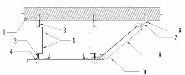 6- 膨脹螺栓;7- 抗震連接構件;8- 槽鋼;9- 快速抗震連接構件