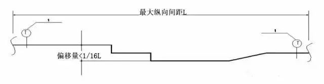 (3)剛性連接的水平管道,兩個相鄰的加固點允許縱向偏移,水管及電線套管不得大于最大側(cè)向支吊架間距的1/16,風管、電纜梯架、電纜托盤和電纜槽盒不得大于其寬度的兩倍(見圖8)。