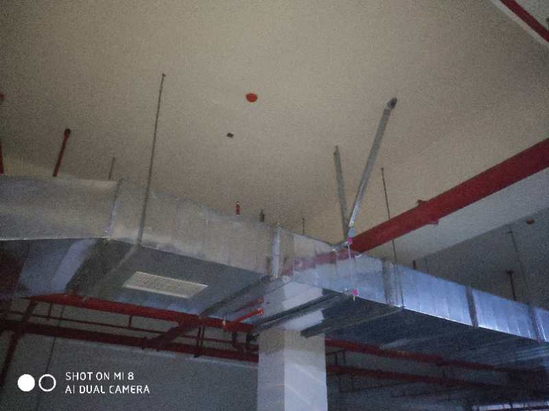 主要便是控制好支架布置的間距和布局了,風管是管道中占用面積比較大的一類管道,這個時候可以考慮在抗震支架上設二層支架把風道架高的辦法來設置。一來在風管下方還有走管線的空間,二來也讓整個結構看起來更合理且清晰。