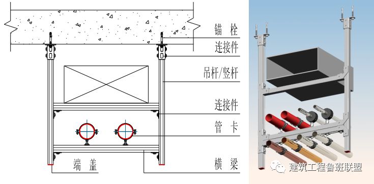 成品管道支吊架,是將給排水、空調(diào)通風(fēng)、消防、強電、弱電等安裝工程中的各專業(yè)的支吊架綜合在一起,通過標(biāo)準(zhǔn)化構(gòu)件組合形成統(tǒng)一的管道支吊架系統(tǒng)。