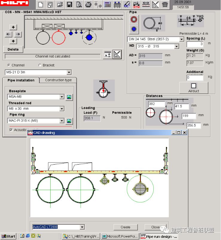 進行所承管線荷載及支吊架的計算及策劃,主要是通過專用管道支吊架軟件設(shè)計及校核,出具受力計算書和CAD圖紙。
