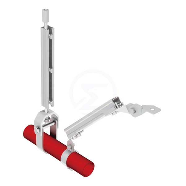 抗震支吊架的組成,抗震支撐由錨固體、加固吊桿、斜撐和抗震連接構(gòu)件組成。懸吊螺桿與管線的節(jié)點距斜撐與管線的節(jié)點距離不得超過0.1m,螺桿根據(jù)需要作加固處理。如果在同一位置設立兩個反向的剛性抗震支撐,則可省去懸吊螺桿。考慮到地震力的荷載,剛性抗震支撐的懸吊螺桿和結(jié)構(gòu)錨固件均需加大尺寸,螺桿和錨固件的最大承載力需大于算得的地震力。