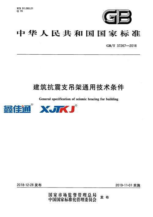 2018年12月28日發(fā)布,2019年11月1日實施的《(GB/T37267-2018)建筑抗震支吊架通用技術條件》。