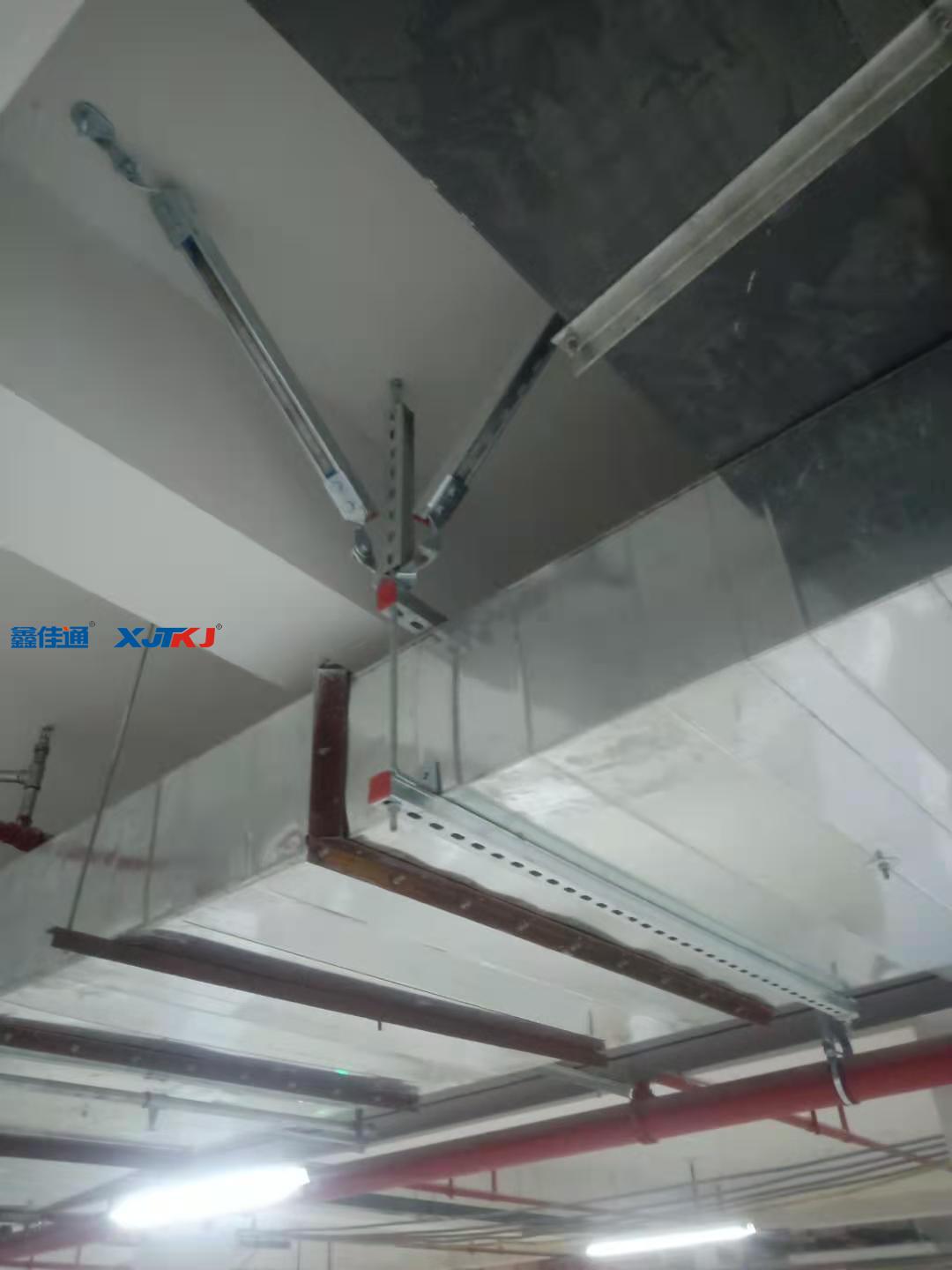 2、間距要求:剛性管道(金屬管道)側向抗震支吊架間距不得超過12米,縱向抗震支吊架間距不得超過24米;柔性管道(非金屬管道)側向抗震支吊架間距不得超過6米,縱向抗震支吊架間距不得超過12米。