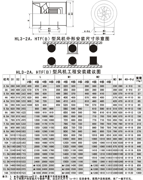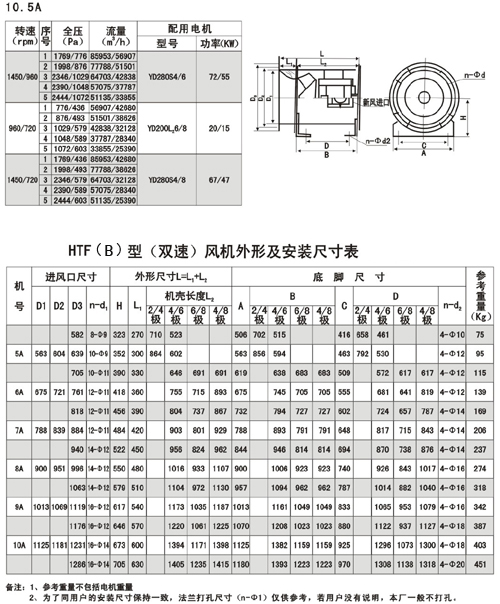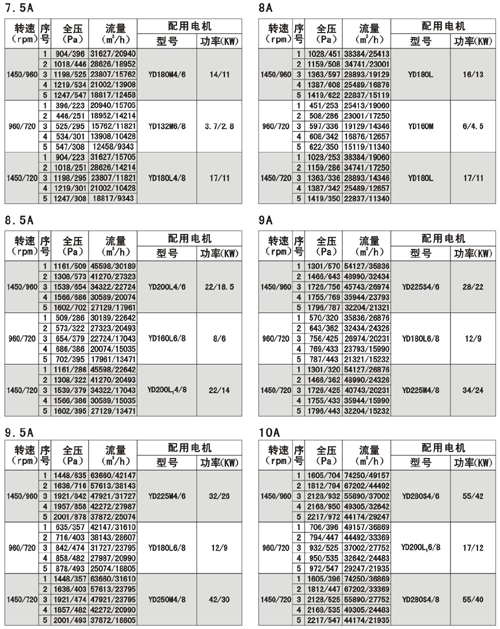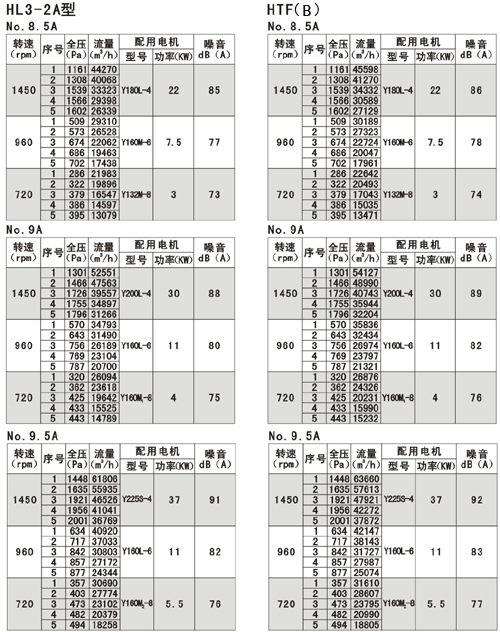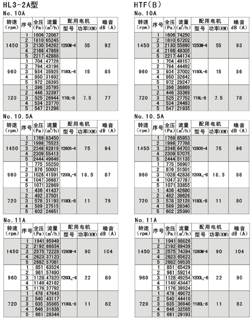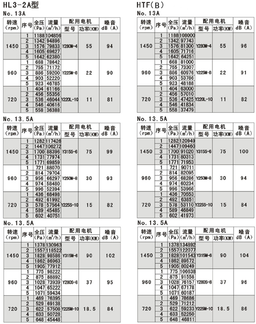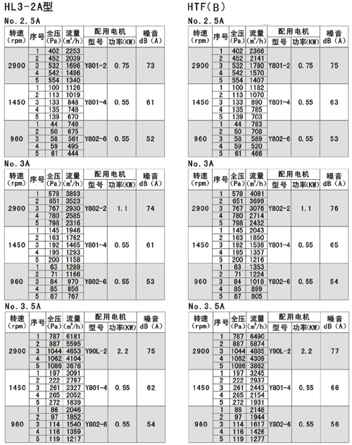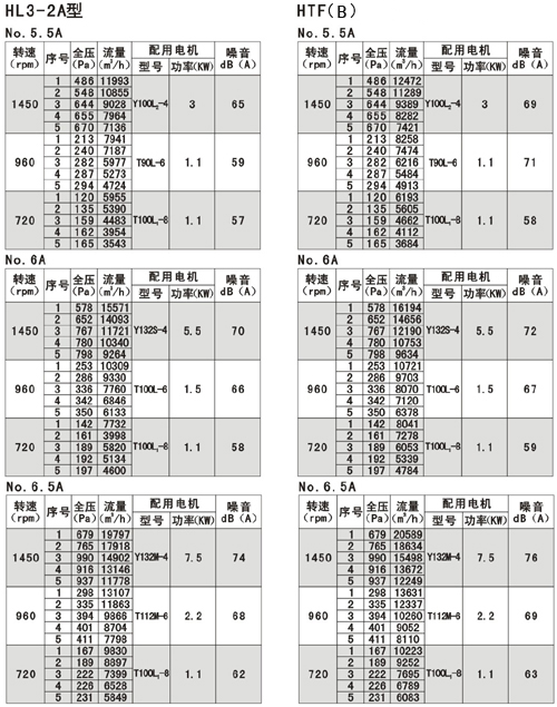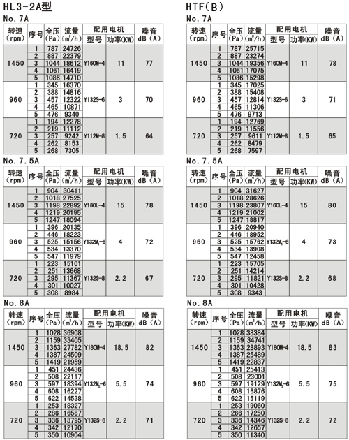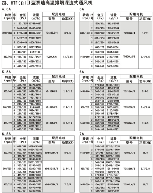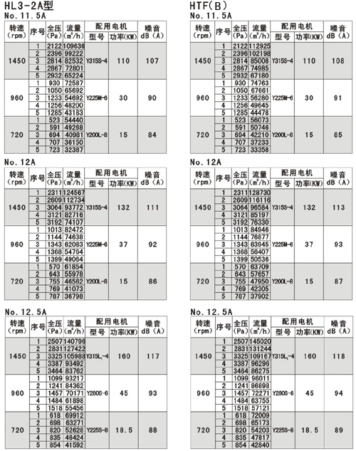 風機的性能可從表上查閱,表中列出的性能是最高效率范圍內(nèi)的性能,按流量分為五個特點,選用時按性能表為準,出廠的風機合格品性能在額定流量下全壓值不超過±5%。性能選用表是標準狀態(tài)下的性能。無論技術文件或定貨要求的性能均按標準狀態(tài)為準,標準狀態(tài)大氣壓為101325pa,t=20,相對溫度--50%空氣狀態(tài),當實際使用條件下與上述不符合時按有關公式進行換算。風機安裝方式可分為立式和臥式,如立式安裝在訂貨中注明,如流量,壓力安裝尺寸等性能參數(shù)有特殊要求時,公司將為您另行設計生產(chǎn)。HTF(PYHL-14A)系列通風機的流量數(shù)值為300℃高溫空氣的流量值,比平常選用時HL3—2A系列風機流量值±5%.