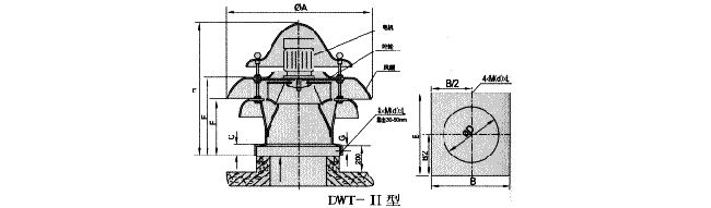 b、離心式屋頂風(fēng)機(jī):代號為DWT-II,型、DWT-III型二種型式,適用于風(fēng)量較小而壓力要求較高的場合。