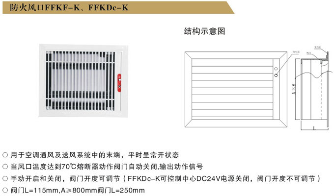 2、防火風(fēng)口用于通風(fēng)空調(diào)系統(tǒng)的末端,其動(dòng)作溫度為70℃。火災(zāi)時(shí)需在送排風(fēng)口隔斷火源。