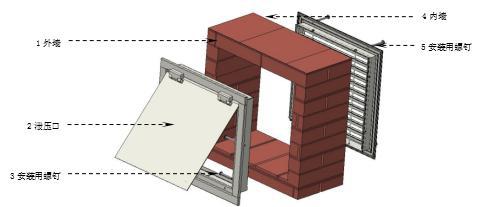 工作原理:當(dāng)滅火劑噴放時(shí)防護(hù)區(qū)內(nèi)壓達(dá)到開(kāi)啟值(1100Pa±50Pa)時(shí),氣壓推動(dòng)門(mén)板并克服磁鐵吸力,在鉸鏈作用下轉(zhuǎn)動(dòng)開(kāi)啟。