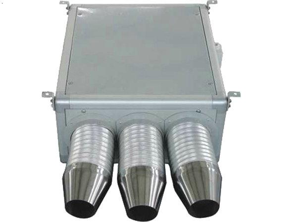 導(dǎo)管臥式誘導(dǎo)風(fēng)機(jī)由離心式通風(fēng)機(jī)、消聲機(jī)箱、三種以下導(dǎo)管組成。回轉(zhuǎn)角度<45°,導(dǎo)管長(zhǎng)=400mm,Φ80×3,Φ100×2,Φ140×1,主要特點(diǎn):氣流導(dǎo)向準(zhǔn)確,噴射間距遠(yuǎn),接力傳遞卷吸量大。
