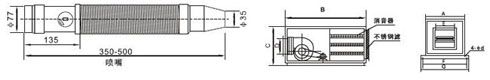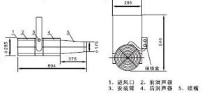 無箱軸流誘導(dǎo)風(fēng)機(jī)由軸流風(fēng)機(jī)、消聲器、噴嘴、固定架組成,回轉(zhuǎn)角度<60°,噴口Φ175.